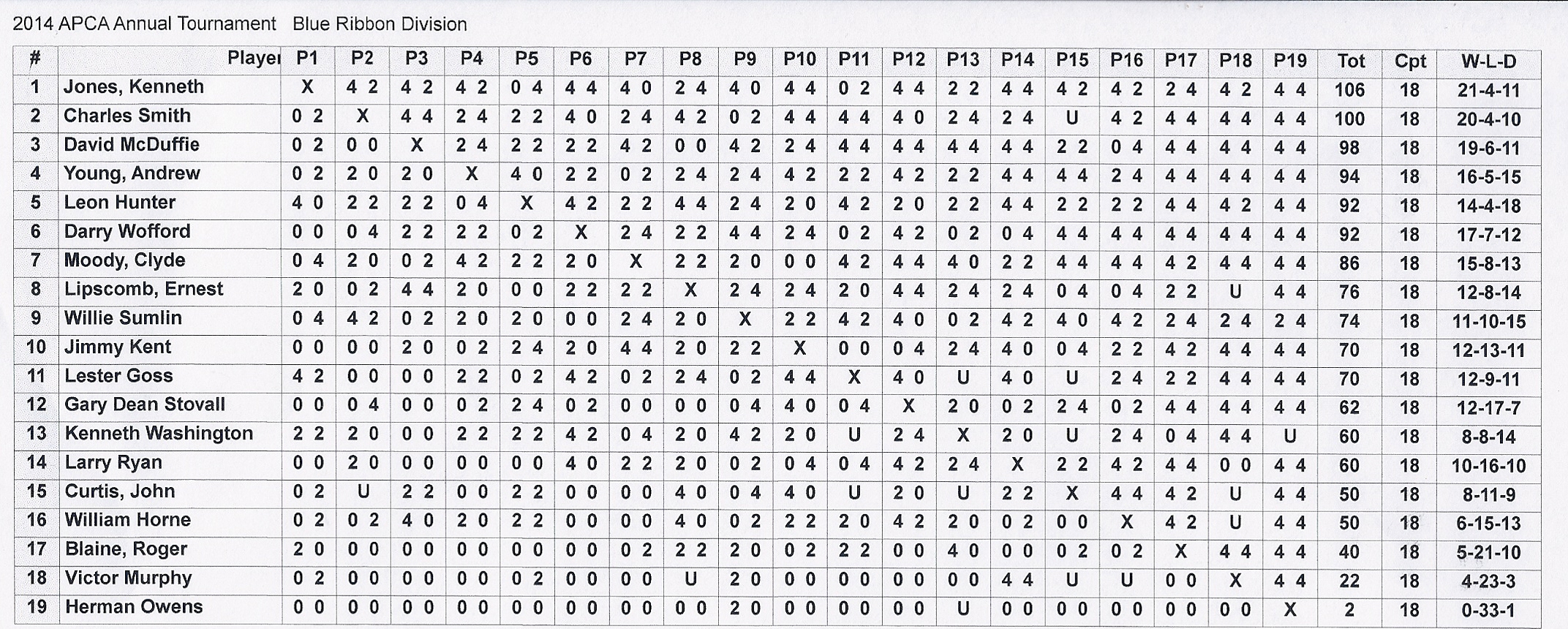 Tournament Results
